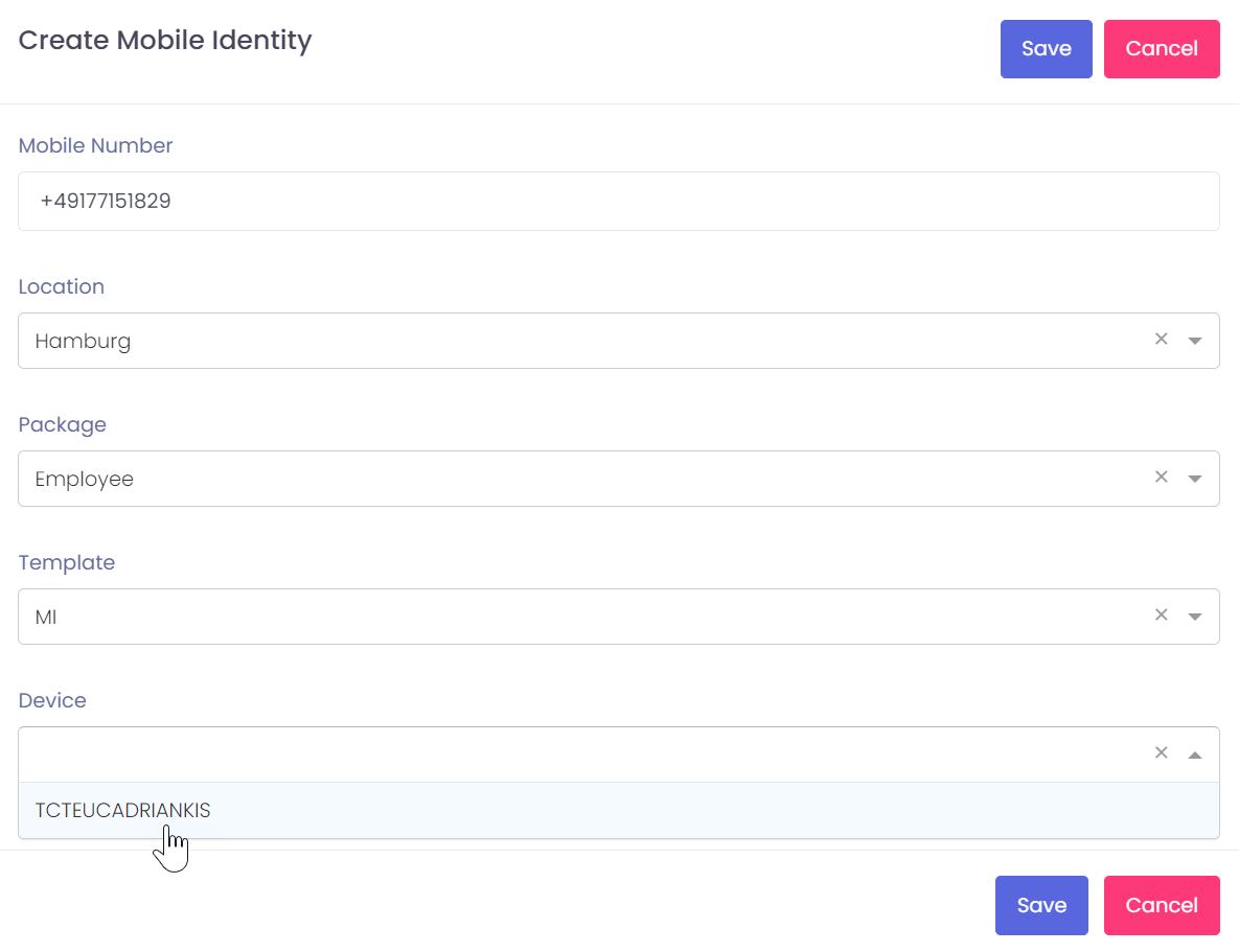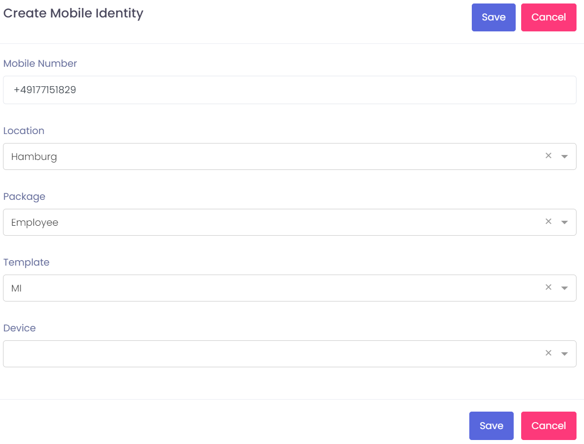 Danach erscheint die gleiche Konfigration wie beim entfernten Ziel. Drücken Sie auf Speichern, um die mobile Identität zu erstellen.