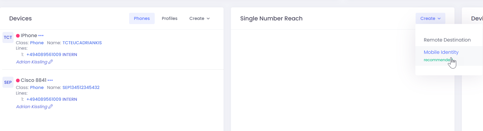 Auch bei Cisco CUCM gibt es zwei Arten der Konfiguration, Remote Destination Profile und Mobile Identity.