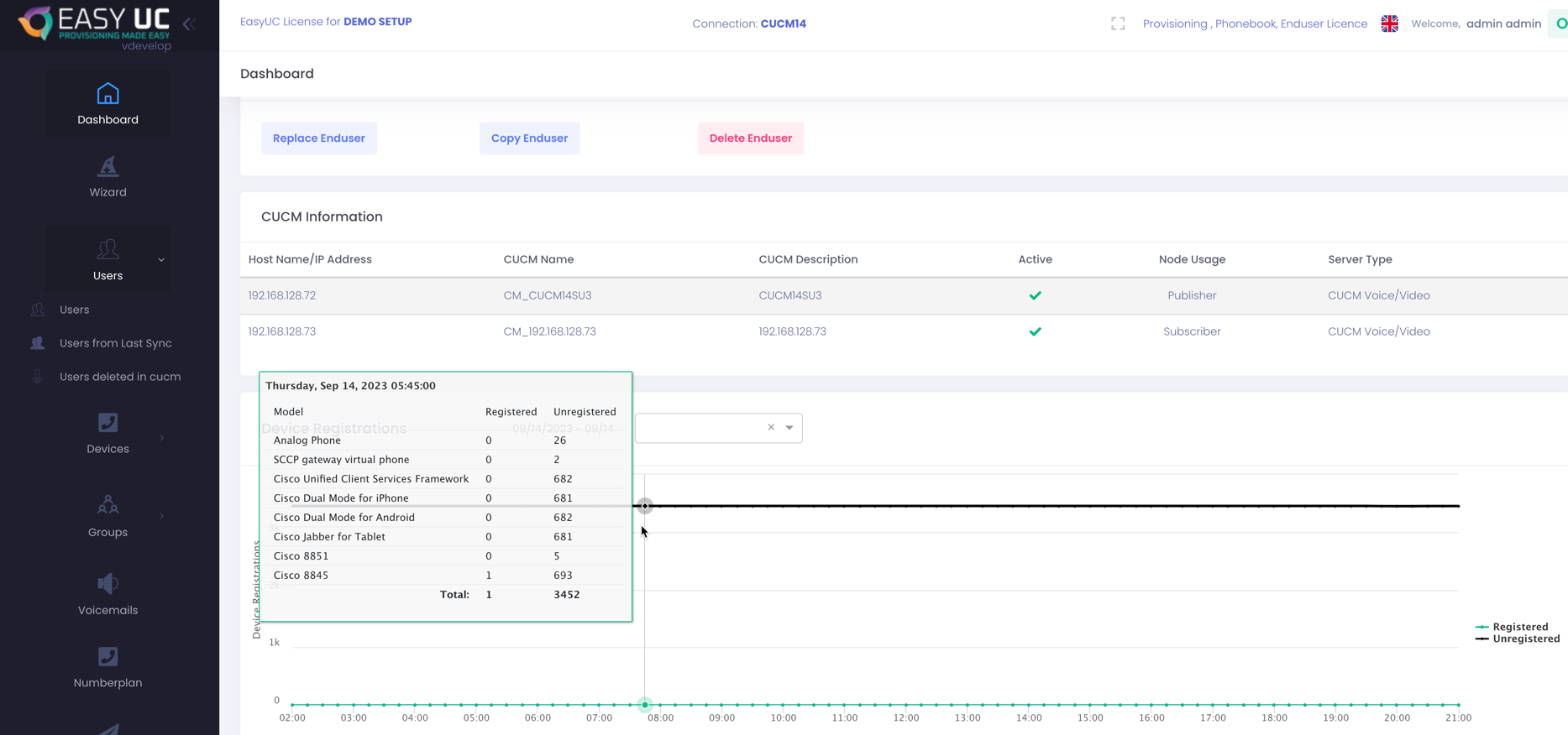 At first you can setup in which interval EasyUC should ask your cluster about current registration status of all devices. In this case its set to 15 minutes. Then you can setup, how many days easyuc should keep these data, in this case 7 days. That means EasyUC will create 96 Status per Device (each 15 minutes are 96 per day) and these 7 times.