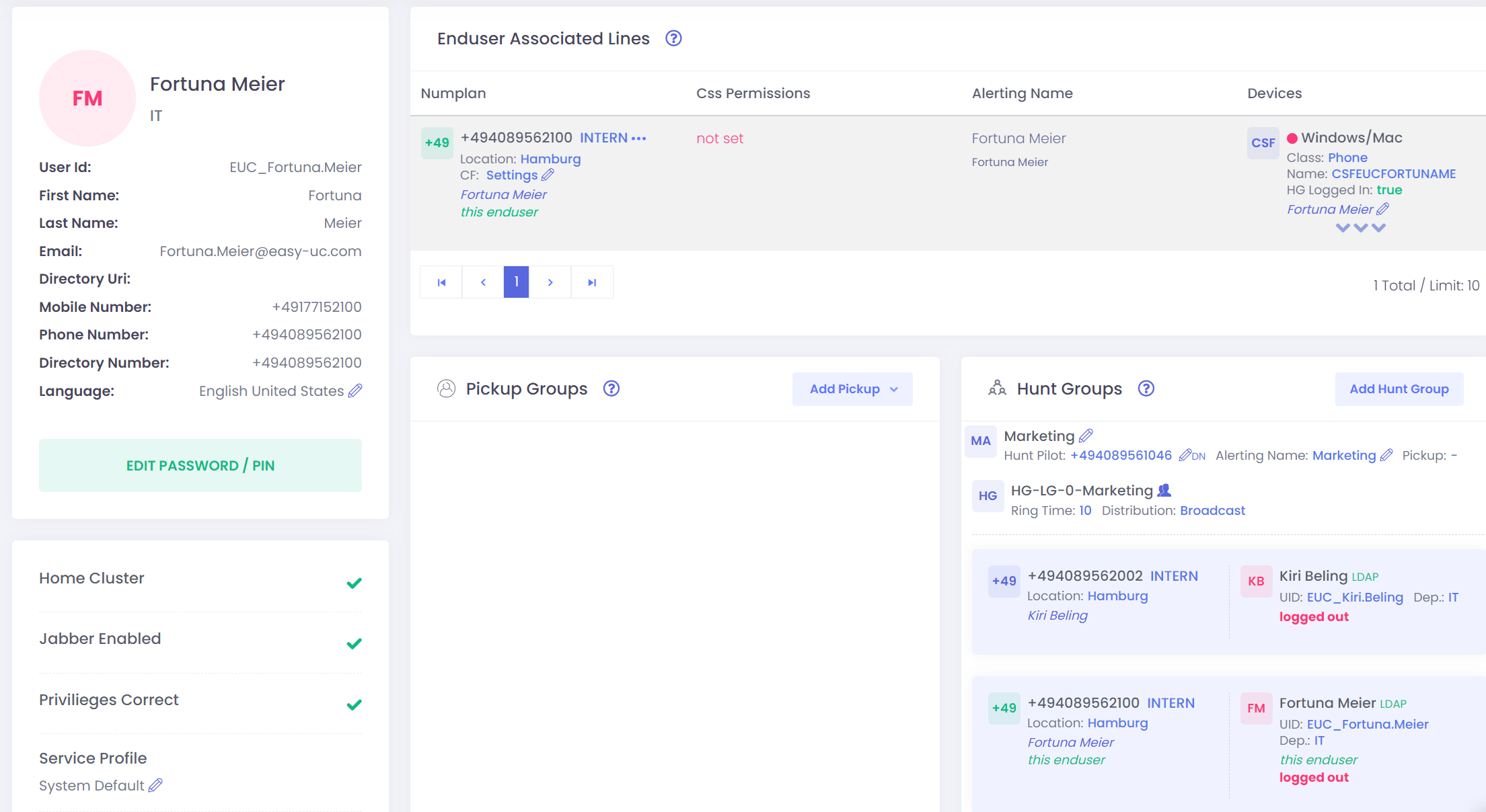 Navigate to “Users” -> “Users” and then search for the user which you want to add to a Hunt Group.