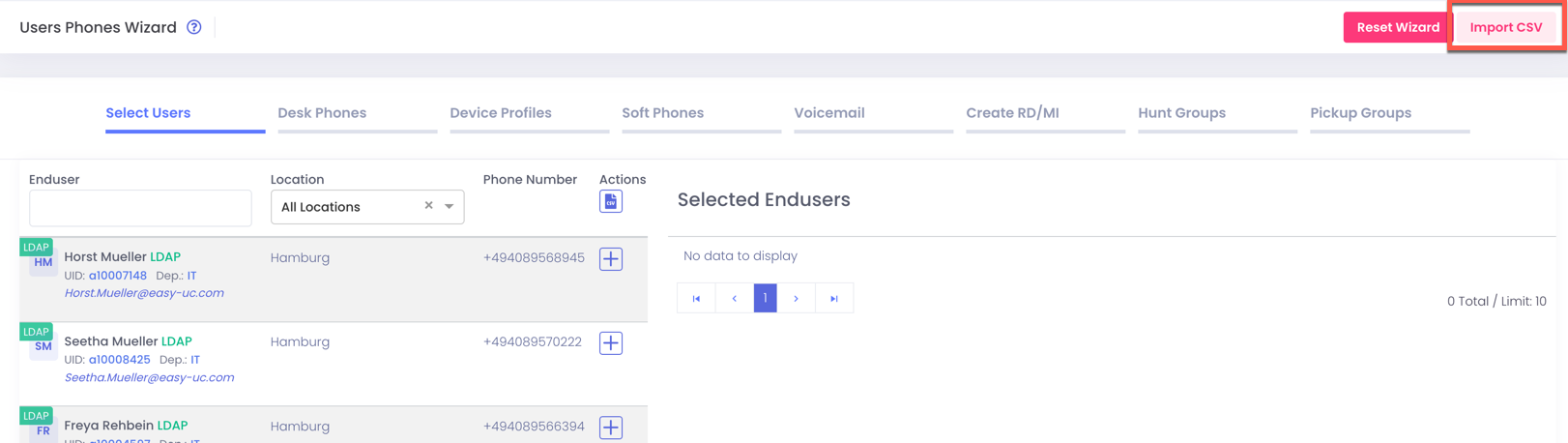 Now you can use the selected users and create desk phones, softphones and all other options.